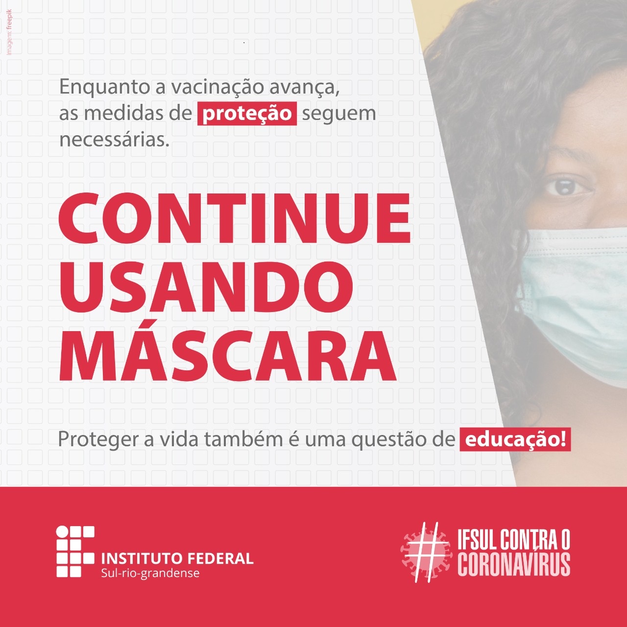 - Se estiver com sintomas gripais, não venha ao campus e avise o COE-E pelo e-mail vg-comitecovid@ifsul.edu.br