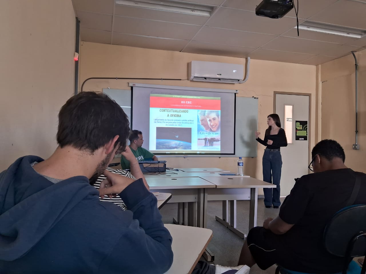 O trabalho “Uma experiência pedagógica envolvendo reações ácido-base na propulsão de foguetes com estudantes do ensino fundamental inspirada no filme Céu de Outubro”, apresentado pela estudante Károlyn Machado da Rosa, do 3º semestre do Curso de Especialização em Ciências e Tecnologias na Educação do IFSul - Campus Pelotas Visconde da Graça (CaVG), foi indicado como destaque no XII Congresso de Extensão e Cultura da Universidade Federal de Pelotas (UFPel).
