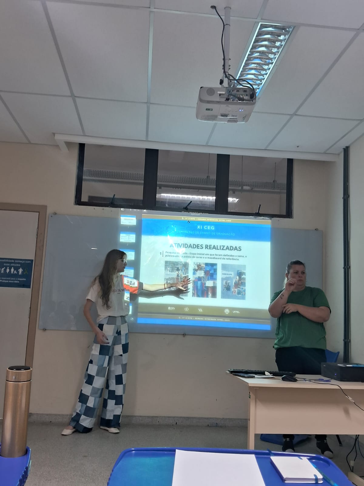 No dia 24 de outubro de 2025, a estudante Agatha Schiavon Ferrari, do Curso Superior de Tecnologia em Design de Moda do IFSul - Campus Pelotas Visconde da Graça (CaVG), apresentou o trabalho intitulado “Memória em curso: uma alternativa para o lixo têxtil” durante a 11ª Semana Integrada de Inovação, Ensino, Pesquisa e Extensão (SIIEPE), no XI Congresso de Ensino de Graduação (CEG) da Universidade Federal de Pelotas (UFPel).